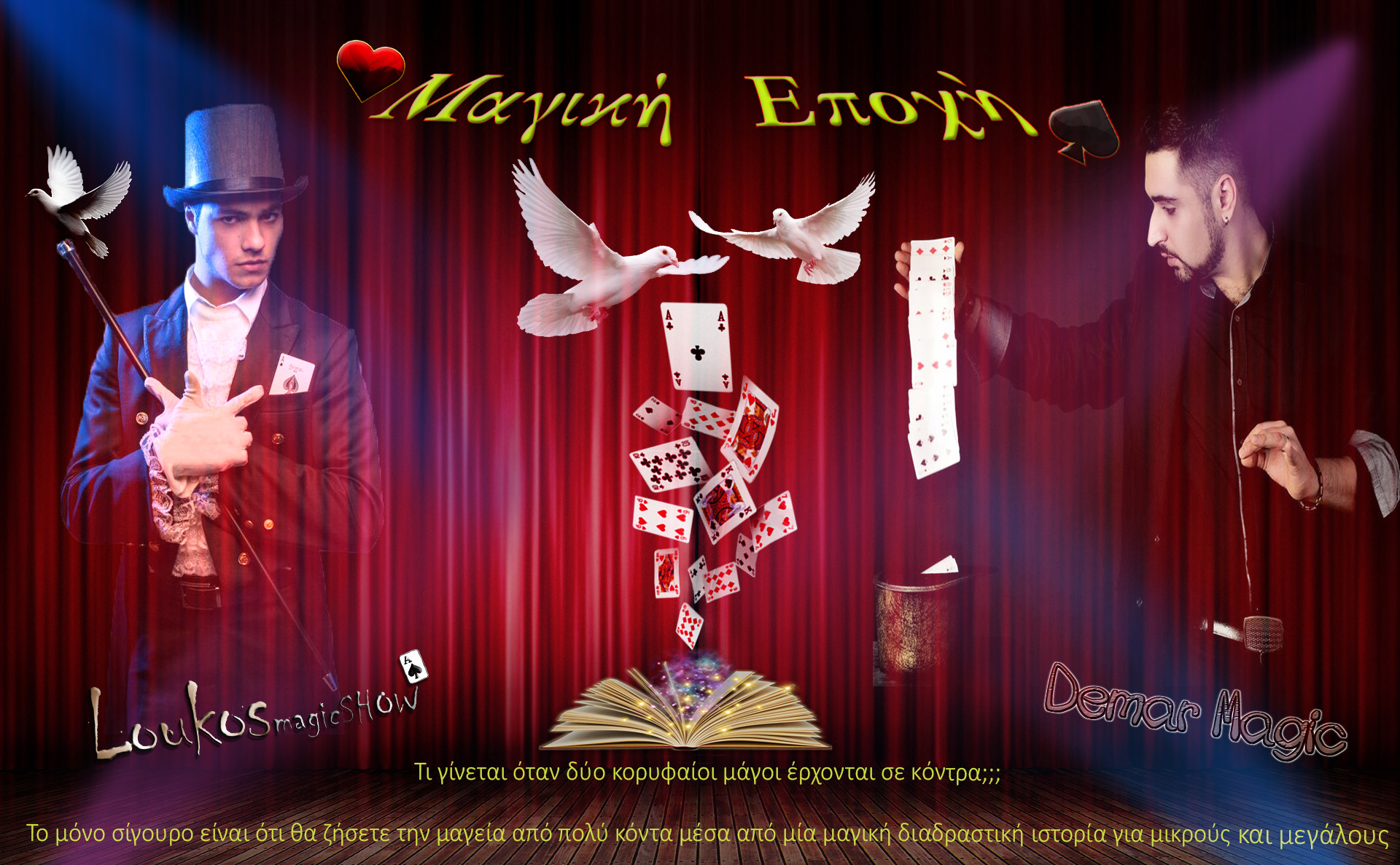 Η μαγική εποχή είναι μια μαγική παράσταση στην οποία δύο επαγγελματίες καταξιωμένοι ταχυδακτυλουργοί έρχονται σε μία μαγική διαμάχη, προσπαθώντας ο ένας να γίνει καλύτερος από τον άλλον. Ο ταχυδακτυλουργός Demar και ο μάγος Loukos γνωστοί και από την εκπομπή  ‘’ Ελλάδα έχεις ταλέντο’’ θα σας ταξιδέψουν μέσα από τα μαγικά τους τεχνάσματα σε μια παραμυθένια εποχή, στην οποία πρωταγωνιστές θα είναι το κοινό. Ο κάθε ένας έχει δικό του ξεχωριστό στυλ παρουσίασης.